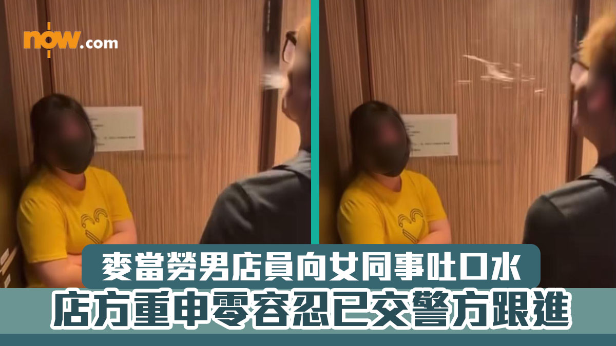 【Now.com】麥當勞連鎖快餐店疑發生職場欺凌事件,昨(21日)網上流傳一段影片,顯示一名身穿麥當勞黑色制服的男職員疑訓斥女同事,期間情緒失控向對方吐口水,女同事受驚連忙閃避,但仍不幸「中招」。事件曝光後,大批網民指責該名男職員涉嫌職場欺凌,行為「完全不能接受」。麥當勞稱已聯絡相關員工並進行內部調查。
