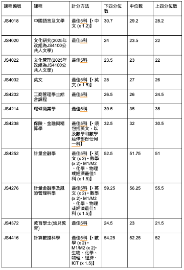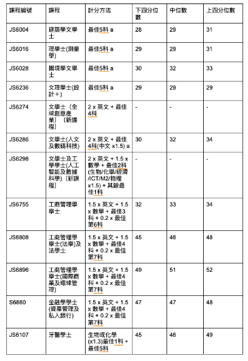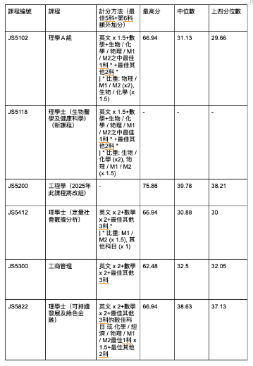 DSE放榜2025|JUPAS大學聯招|理工大學(部分科目)