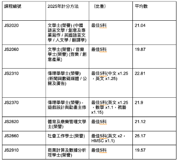 2025年JUPAS招生9間大學的DSE成績計算方法(數據只供參考,部分大學不同科目計分比重也會有分別)
