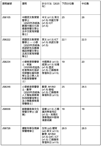 DSE放榜2025|JUPAS大學聯招|教育大學(部分科目)