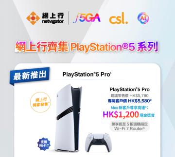 承諾使用指定計畫的CSL、網上行、1010、NowTV專屬客戶可以優惠價$5580購買 Playstation 5 Pro。