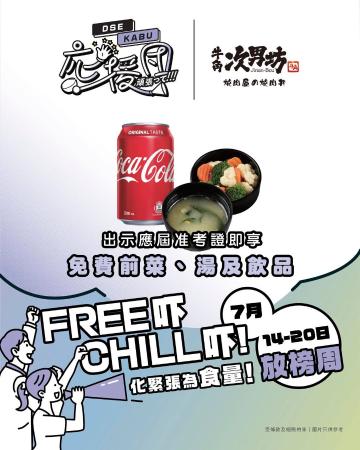 由7月14至7月20日,應屆考生只需出示DSE准考證,惠顧燒肉丼可免費獲贈味噌湯、是日前菜及飲品。