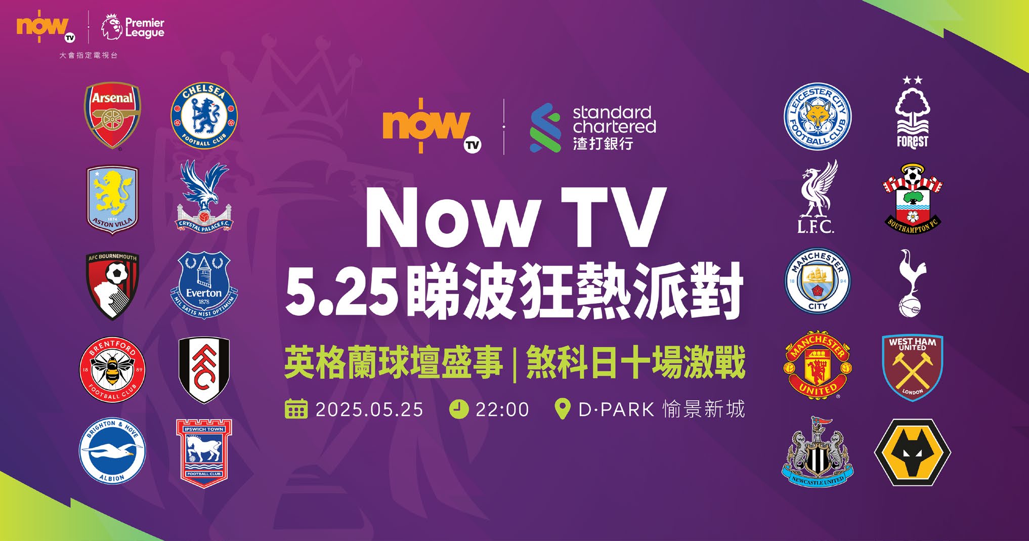 「Now TV 5.25睇波狂熱派對」活動詳情如下: