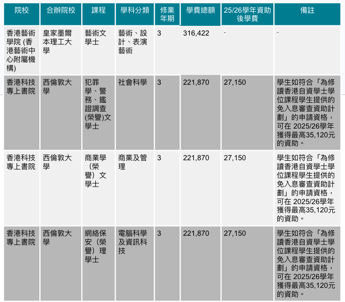 【Now.com】DSE放榜臨近,相信不少考生正密鑼緊鼓了解不同的升學資訊,希望報讀心儀的課程。考生如心儀海外課程,未必需要到外地升學,有本地院校與海外大學合辦自資學位課程,學費較親身到外地就讀便宜,為學生提供另類出路。究竟有哪些課程選擇?學費是多少?即睇下文介紹。