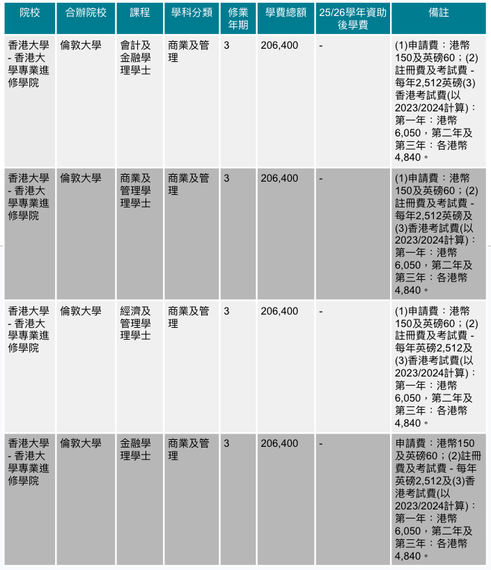 本港3個院校提供合共12個經評審學術及職業資歷評審局評審的非本地自資課程。而下文介紹的課程,全部經由香港學術及職業資歷評審局評核,在管治架構、學術水平和質素、師資、質素保證機制和財政狀況等方面符合「四階段質素保證程序」要求。