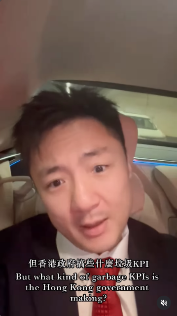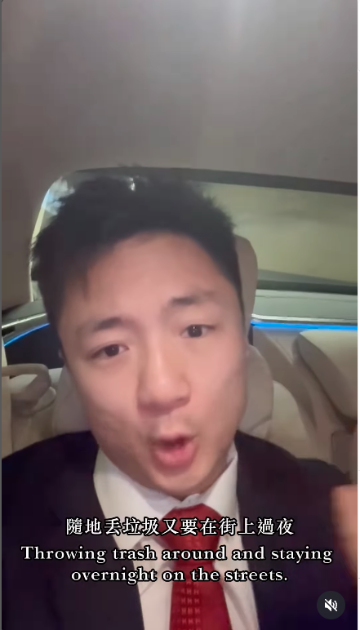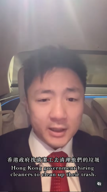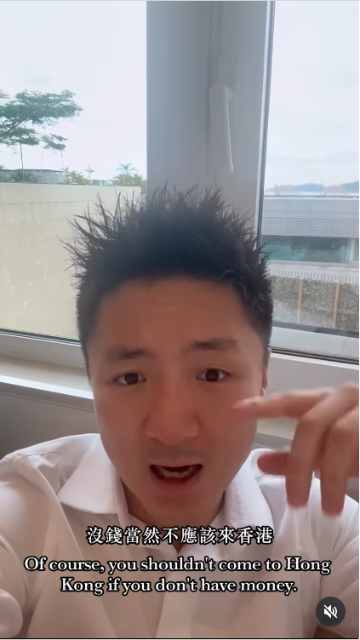 但時下內地流行旅遊特種兵,更出現「18元遊香港」的現象,他批評對香港經濟沒有幫助,甚至要香港納稅人「倒貼」,「港府搞些甚麼垃圾KPI,給那些人窮遊,18元來香港真的不要來了,18元來香港又沒文化又沒水準,隨地丟垃圾又在街上過夜」,又批評他們阻塞麥當勞空間,「香港政府聘清潔工人去清潔他們的垃圾,都輸光了」。