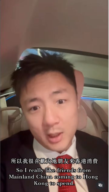 鍾培生本周一(6月30日)在個人社交平台上載影片,影片中他以西裝打扮,指出「無國又邊有家呢?所以我係好鍾意內地朋友嚟香港消費,超級懷念這個這個這個不要,其他的都幫我包起來。」