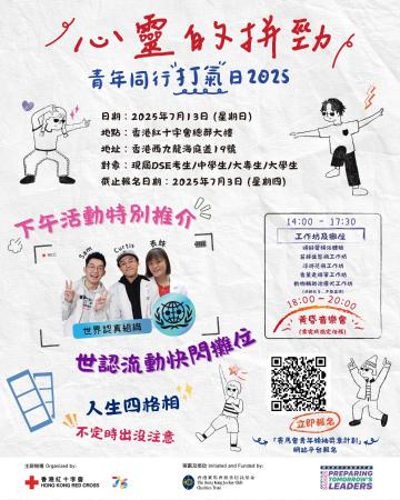 香港紅十字會將舉辦「青年同行打氣日2025」,邀請「世界認真組織」的3位主持Sam、Curtis和表妹,一同參與下午的打氣活動,分享他們的放鬆和減壓方法。參加者還有機會與世界認真組織的主持一同拍攝「人生四格」照片。