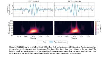 據英國《衛報》(The Guardian)周一(14日)報道,國際科學合作組織「激光干涉儀重力波觀測站」(LIGO)在2023年11月23日,於美國華盛頓州和路易斯安那州的探測器同步捕捉到這個畫面,儀器記錄到重力波持續了0.1秒,發生碰撞的兩個黑洞質量分別為太陽的103倍和137倍,在距離地球100億光年處合併成一個質量為265倍太陽質量的黑洞。黑洞碰撞後的旋轉速度亦高達地球自轉的40萬倍,代表新生成的黑洞仍在快速旋轉。