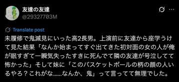 該日本媽媽查問下,才知道原來兒子先前從來未有接觸過《鬼滅之刃》的動畫或漫畫,在朋友的邀約下,答應了一同看這部電影。但如果不能理解作品的世界觀或劇場版動畫前的劇情,就會影響觀賞體驗。他的朋友為了讓他可以全程投入到觀看電影當中,特意舉辦了6小時「雞精班」,詳細講解作品中的人物關係、世界設定、前情提要等。