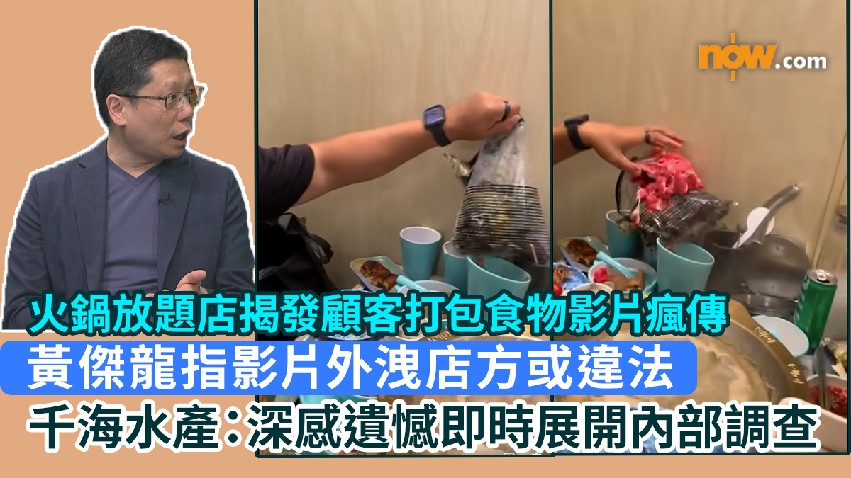【Now.com】一對男女上周六(27日)光顧火鍋放題店,疑企圖將大量食物「打包」帶走,引起市民熱議。有經營放題式火鍋及燒肉店的敘福樓集團主席兼行政總裁黃傑龍指,不論由誰人發佈有關片段,餐廳作為影片擁有人,都要為影片外流負上最大的法律責任。
