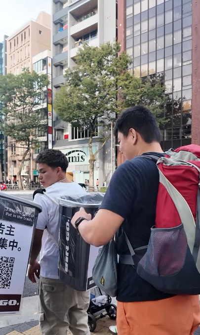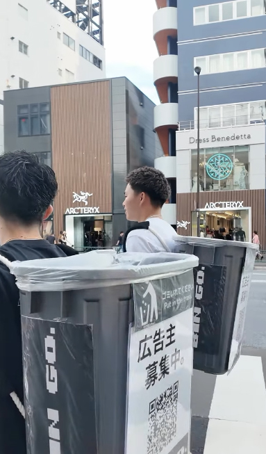 由幾個日本年輕人組成的團體「Bin Go」,留意到東京街頭垃圾桶稀少,對遊人造成不便,希望讓街道更整潔。他們 每逢周五至周日孭着 「移動垃圾桶」,垃圾桶更分為可回收及不可回收,穿梭東京各大旅遊熱點,如原宿、涉谷、淺草等,讓手持垃圾的途人可以棄置垃圾。他們又在社交平台開設帳號@bin_go53,分享收集垃圾的過程,又訪問遊客對行動的想法。