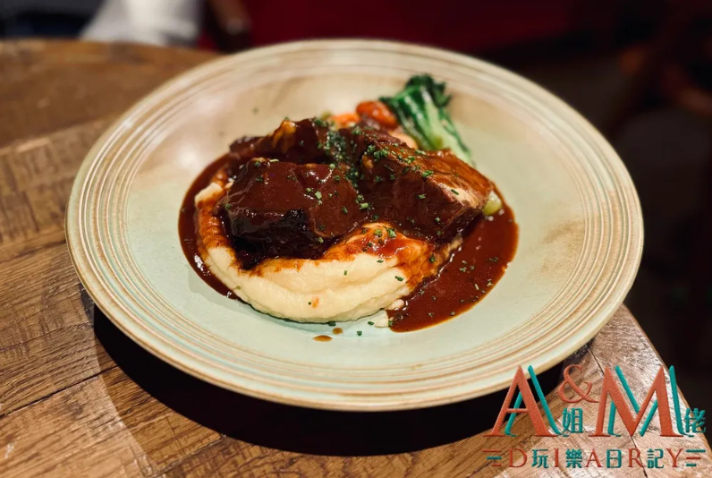 牛頰肉配薯蓉佐長柄西蘭花及蘑菇