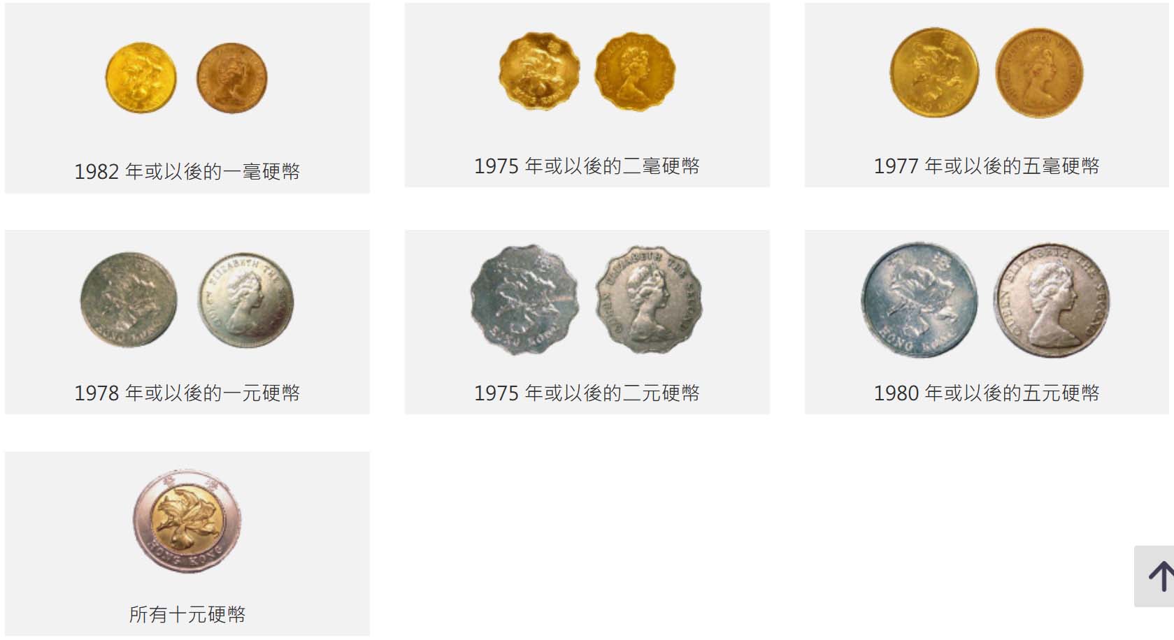 硬幣收集計劃接受以下香港流通硬幣: