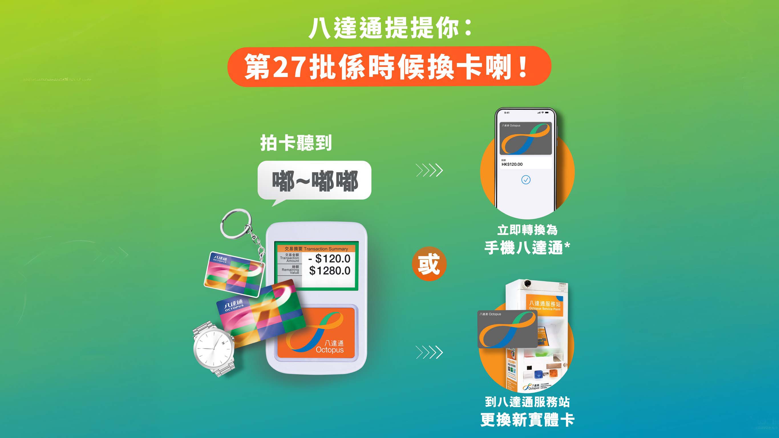 【Now.com】八達通在社交平台提醒,第27批八達通卡將於2026年4月25日失效,拍有關八達通時會聽到「嘟~嘟嘟」的提示音,亦可以檢視以下4組號碼,了解是否在換卡之列,如果確認為須更換的八達通卡,便要在通知期內完成換卡手續。