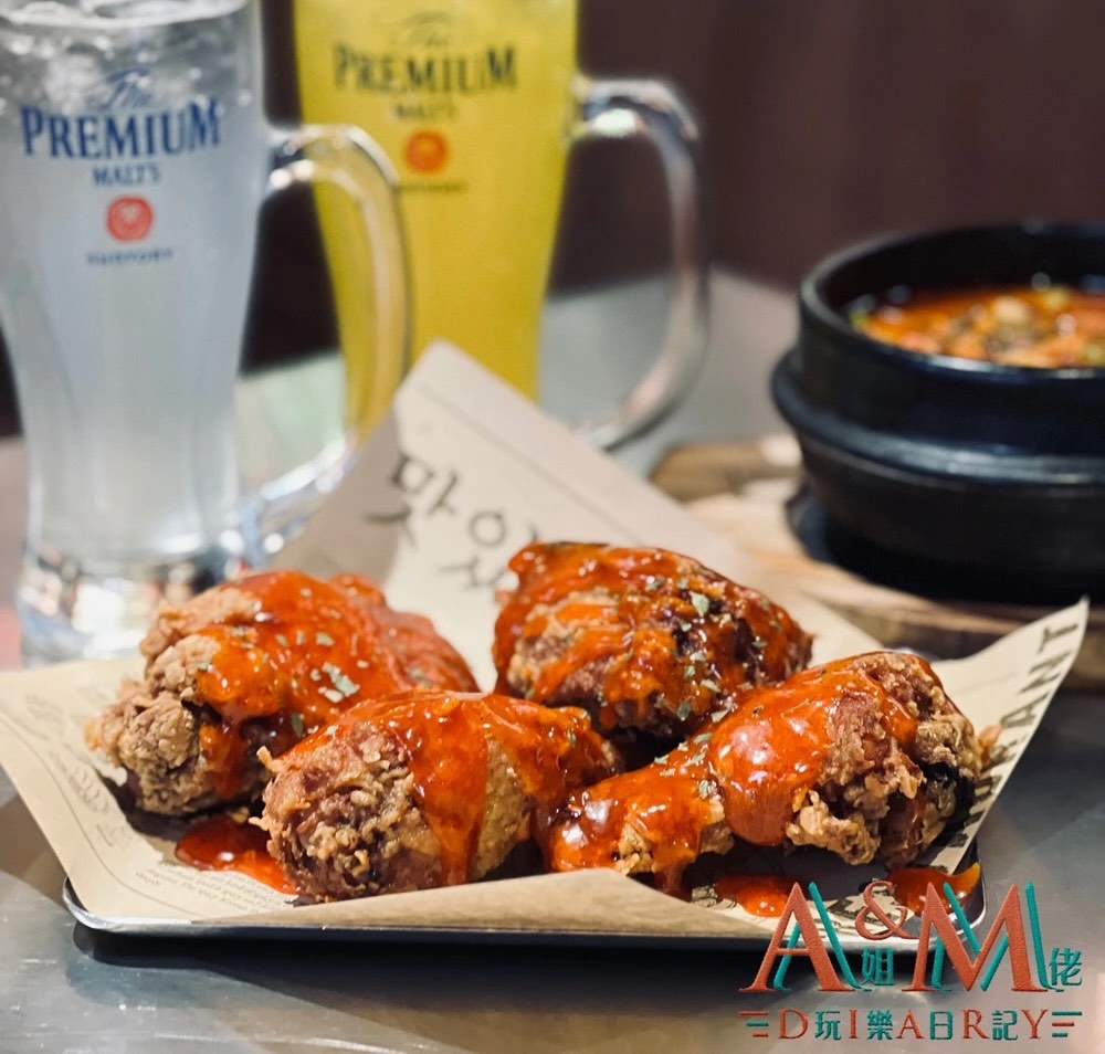 韓大叔大排檔嘅炸雞口味有好多款,總有一種啱你心水。而我哋就揀咗甜辣炸雞,醬汁嘅份量啱啱好,唔怕食到最尾會冇晒醬,味道甜甜辣辣,非常惹味。