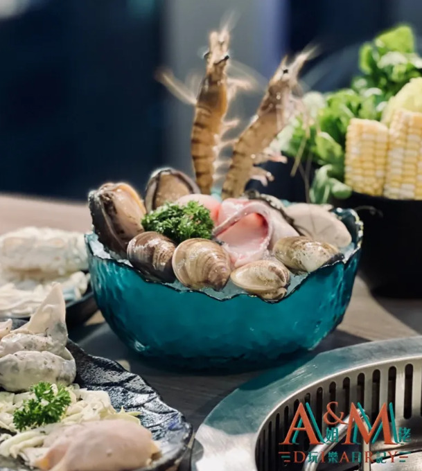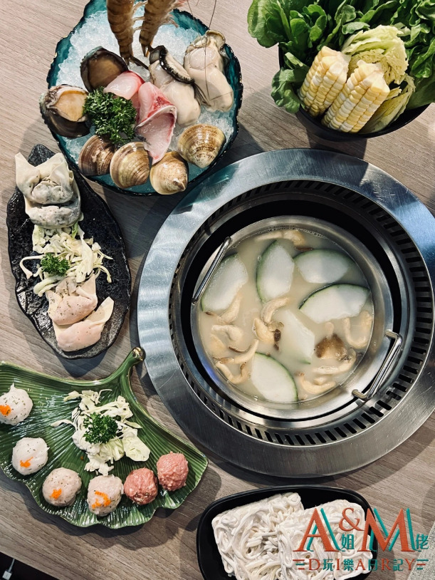 二人份量嘅海鮮拼盆有齊鮑魚、海蝦、台山蠔、脆鯇片、卜卜蜆,全部都夠晒新鮮。特別喜歡大隻飽滿嘅台山蠔,成隻放落口就係幸福;鮑魚非常新鮮又大隻,鮮甜又彈牙;卜卜蜆嘅蜆肉漲卜卜,令湯底更鮮甜。