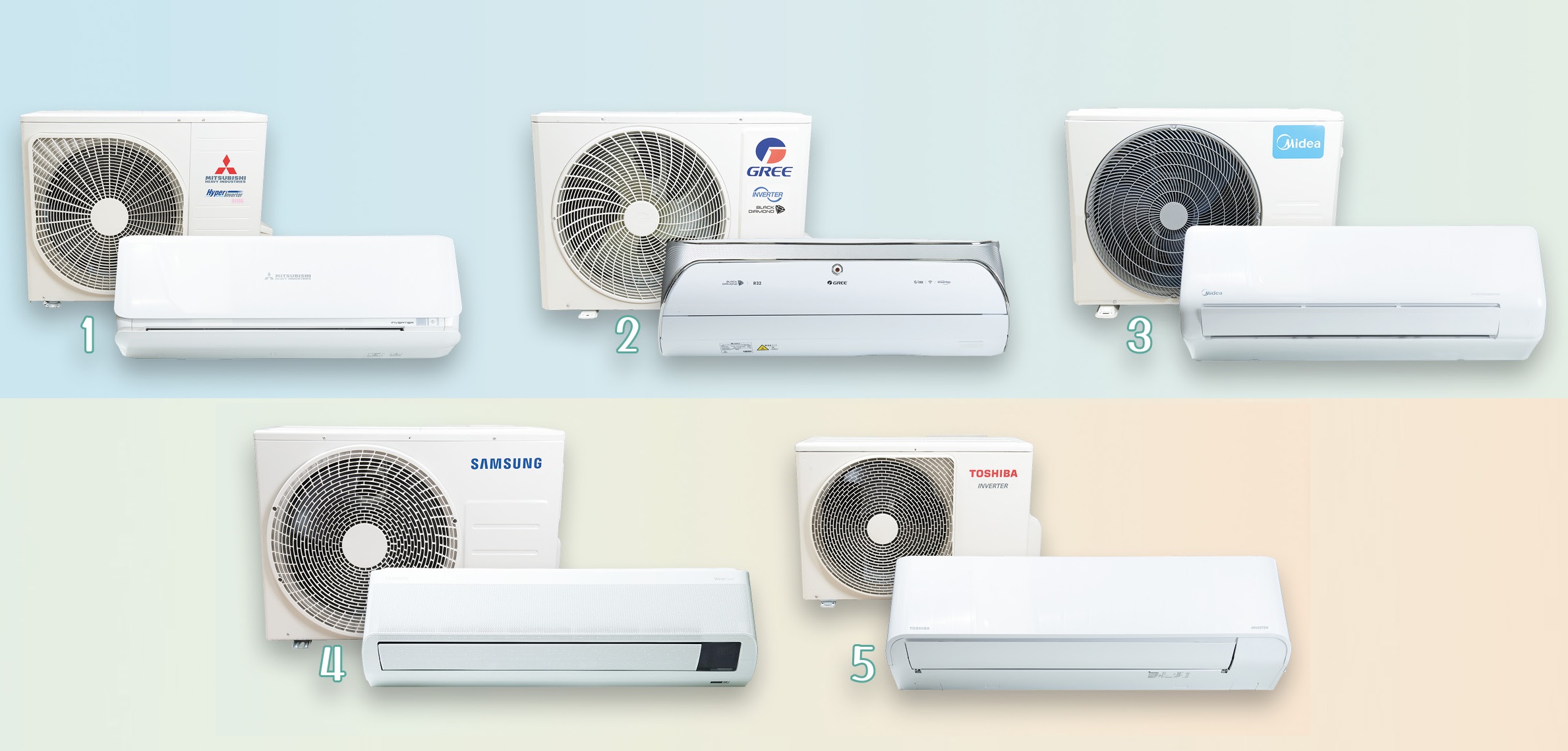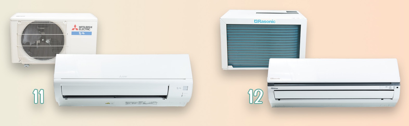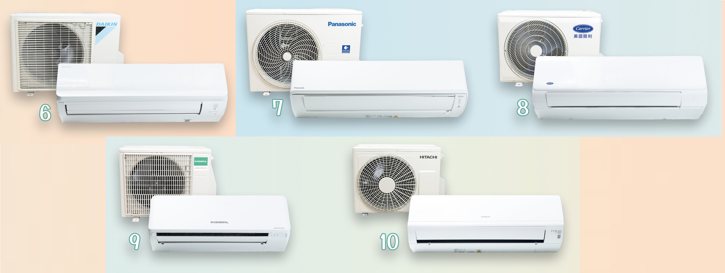 消委會測試了市面上出售的12款一級能源效益的「兩匹」的變頻式分體式冷氣機,包括5款冷暖空調機及7款淨冷型冷氣機,根據機款的能源效益、電費、寧靜程度及送風量等進行測試。各款產品總評如下: