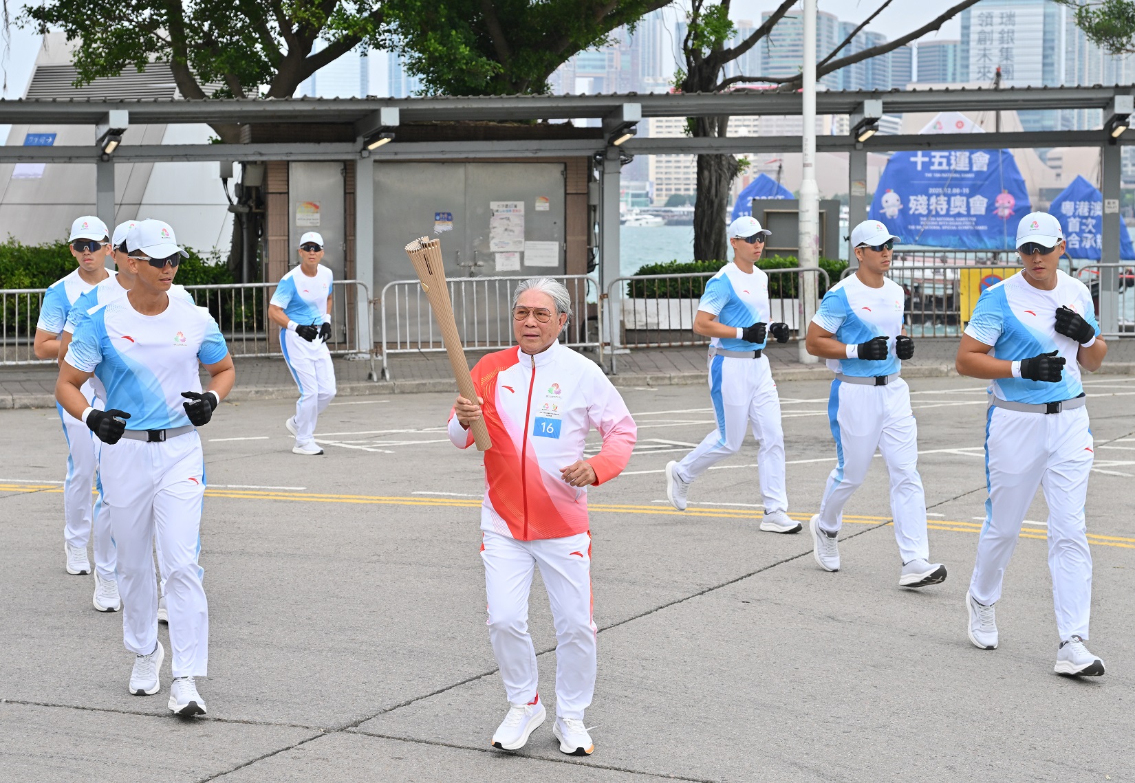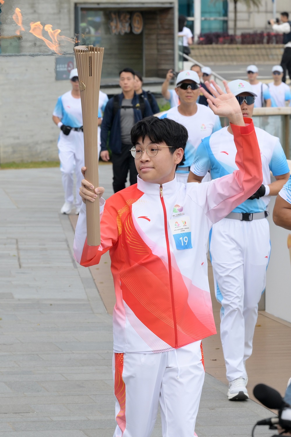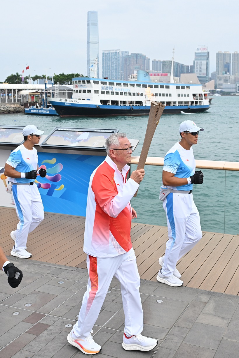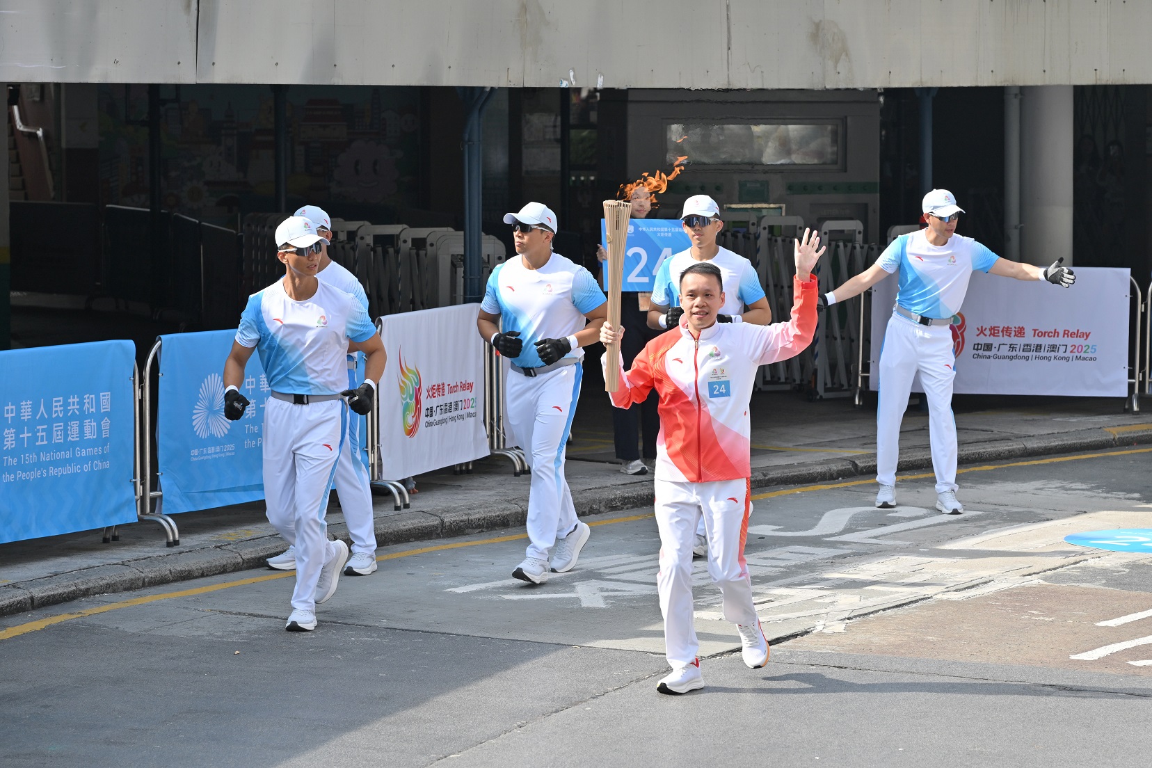 隨著文化體育及旅遊局局長羅淑佩用火種棒燃點火種盆,並由陳國基點燃火炬棒,再交由第一棒火炬手、香港乒乓球代表黃鎮廷,正式展開香港賽區的火炬接力傳遞,最終送抵啟德體育園中央廣場,再由最後一棒、世大運金牌得主、港隊女子重劍代表佘繕妡點燃火盆完成傳遞。