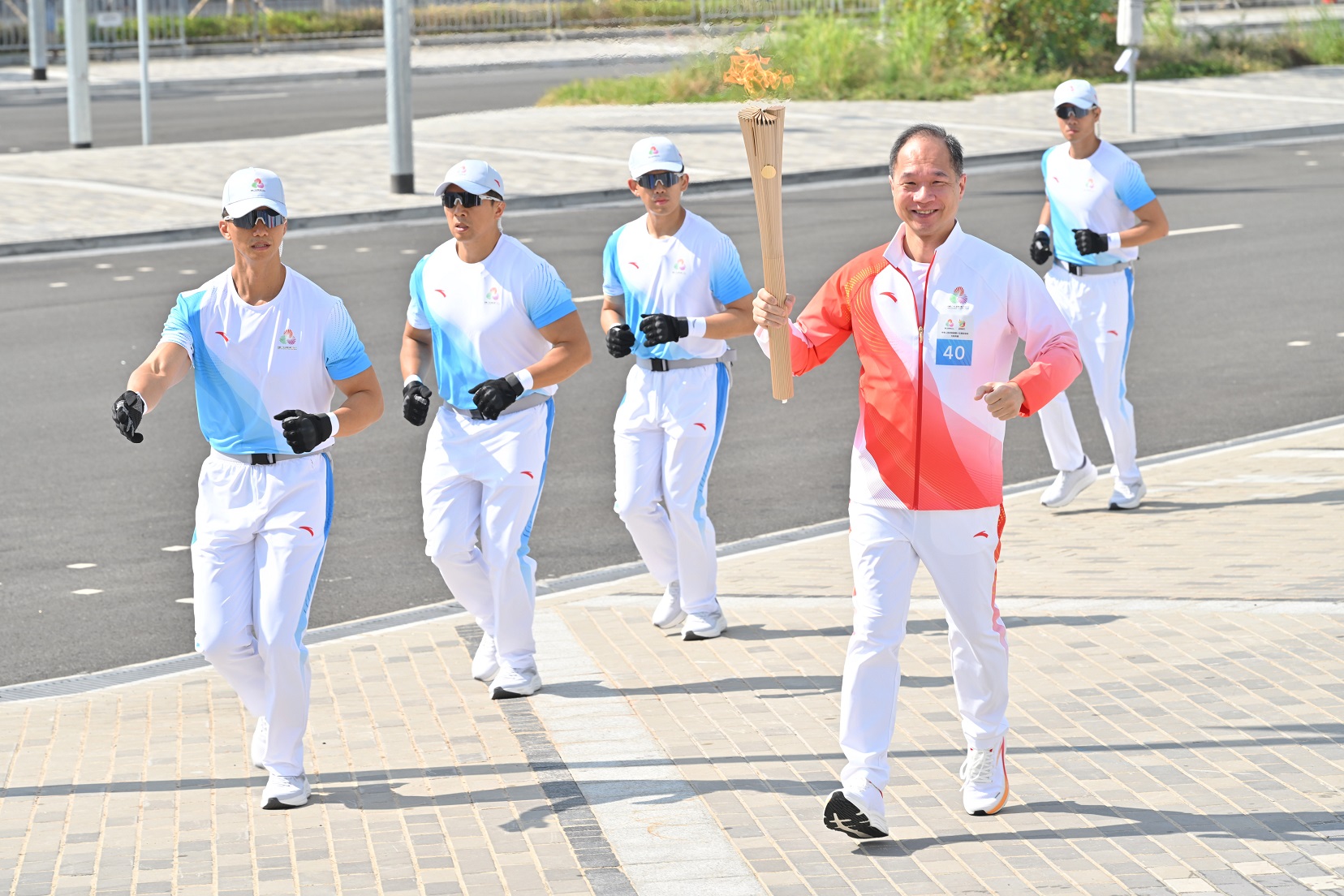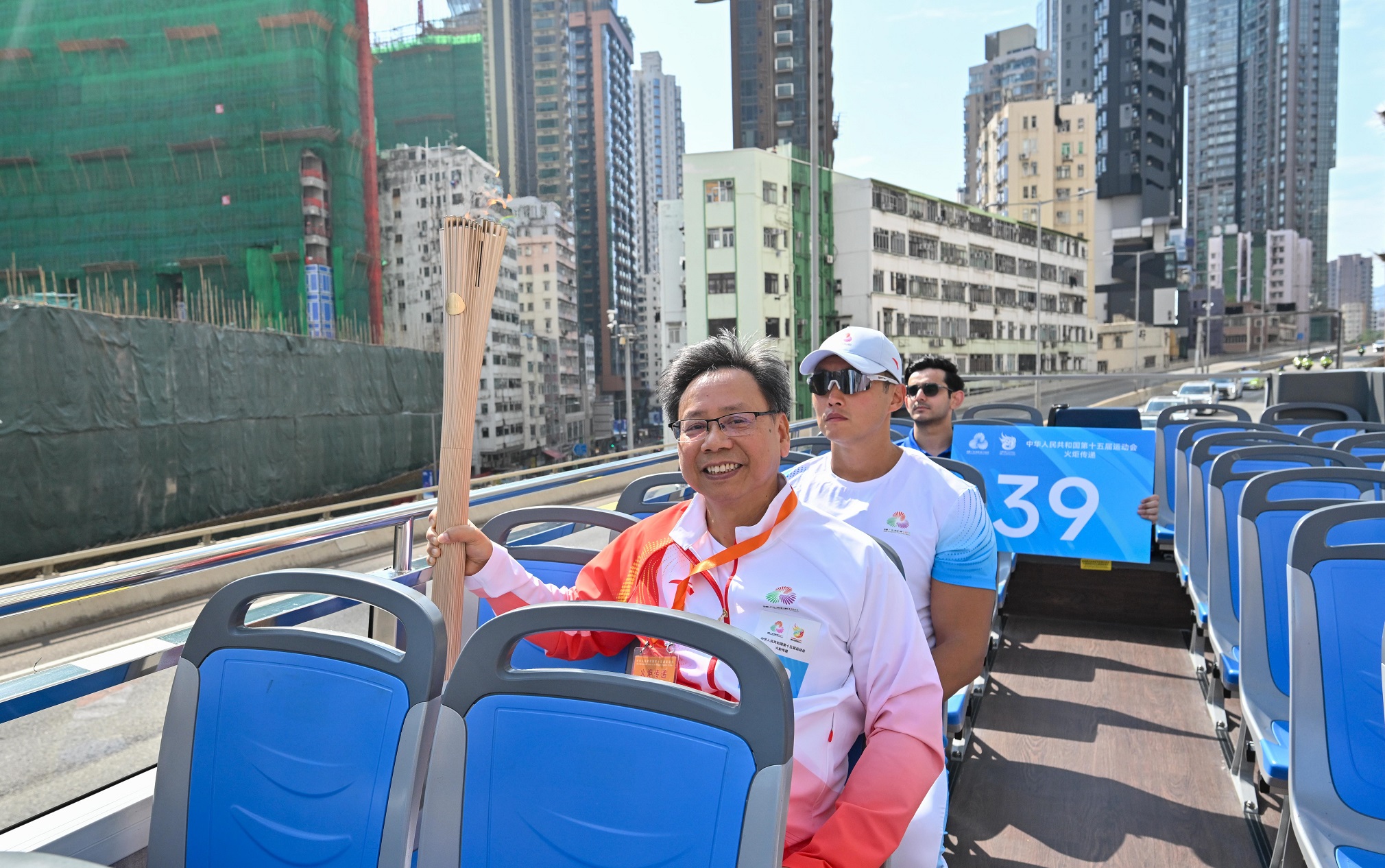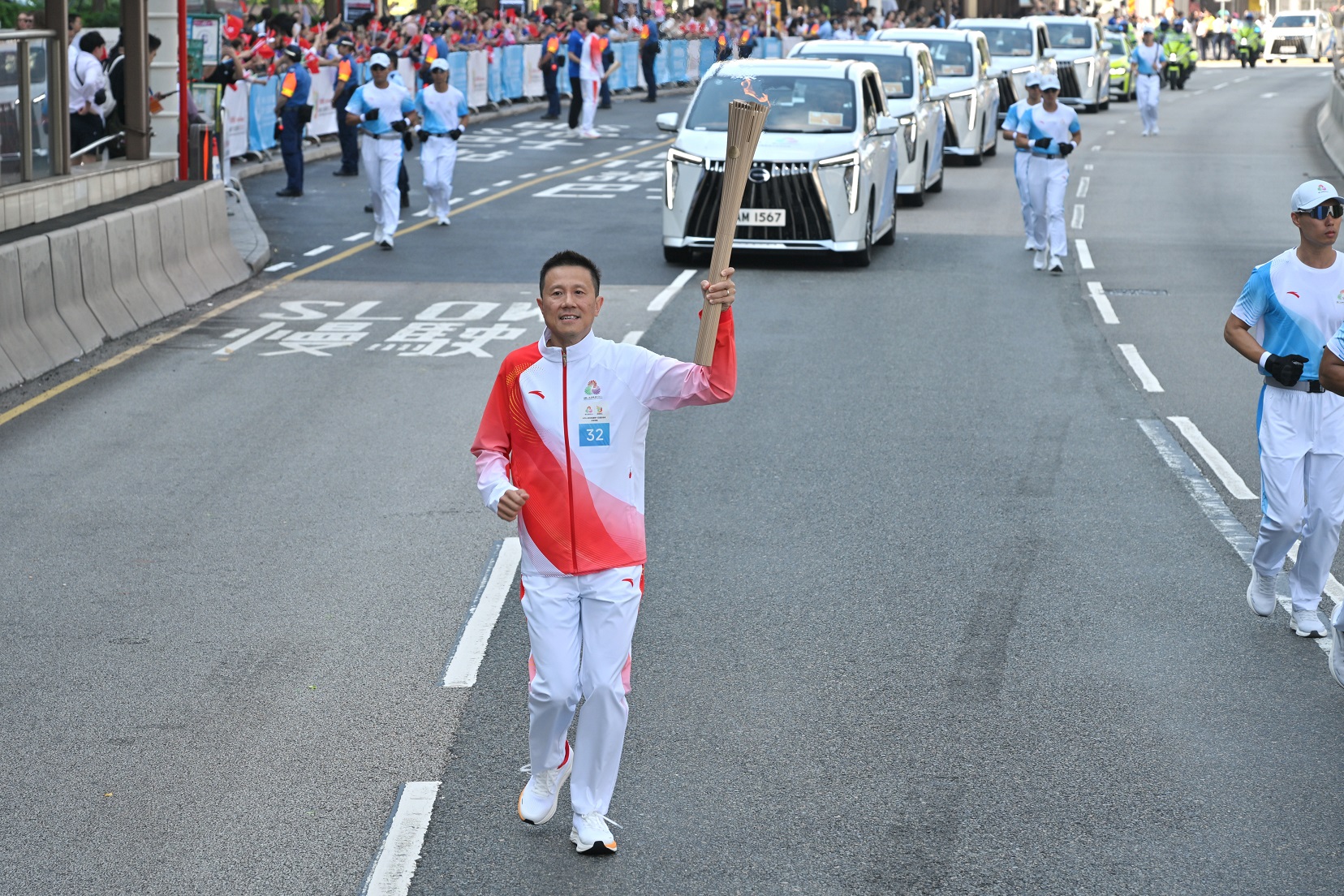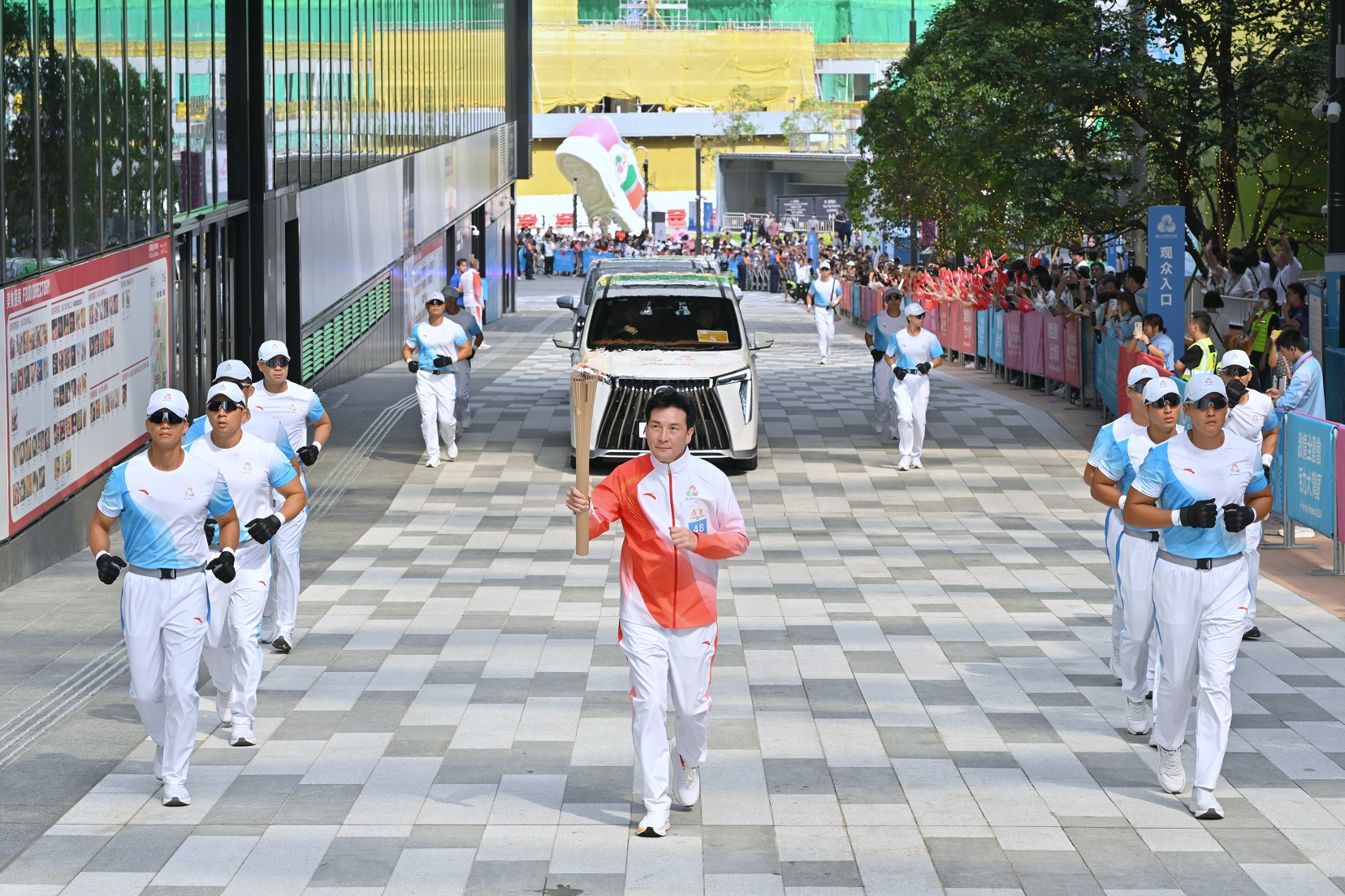 隨著文化體育及旅遊局局長羅淑佩用火種棒燃點火種盆,並由陳國基點燃火炬棒,再交由第一棒火炬手、香港乒乓球代表黃鎮廷,正式展開香港賽區的火炬接力傳遞,最終送抵啟德體育園中央廣場,再由最後一棒、世大運金牌得主、港隊女子重劍代表佘繕妡點燃火盆完成傳遞。