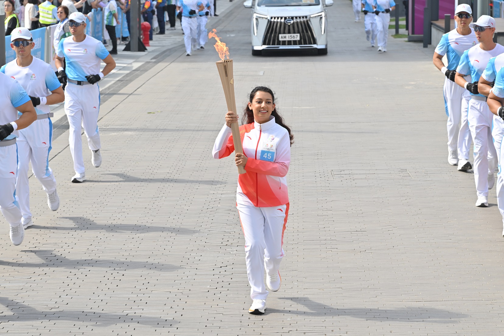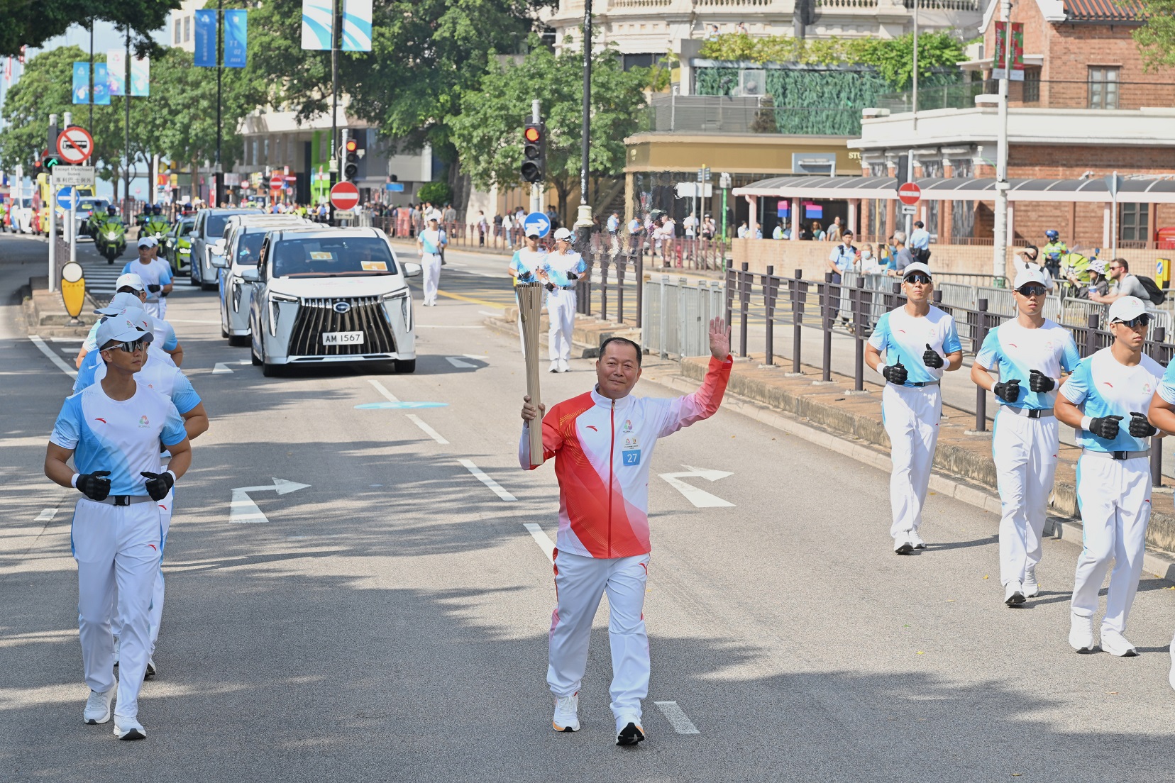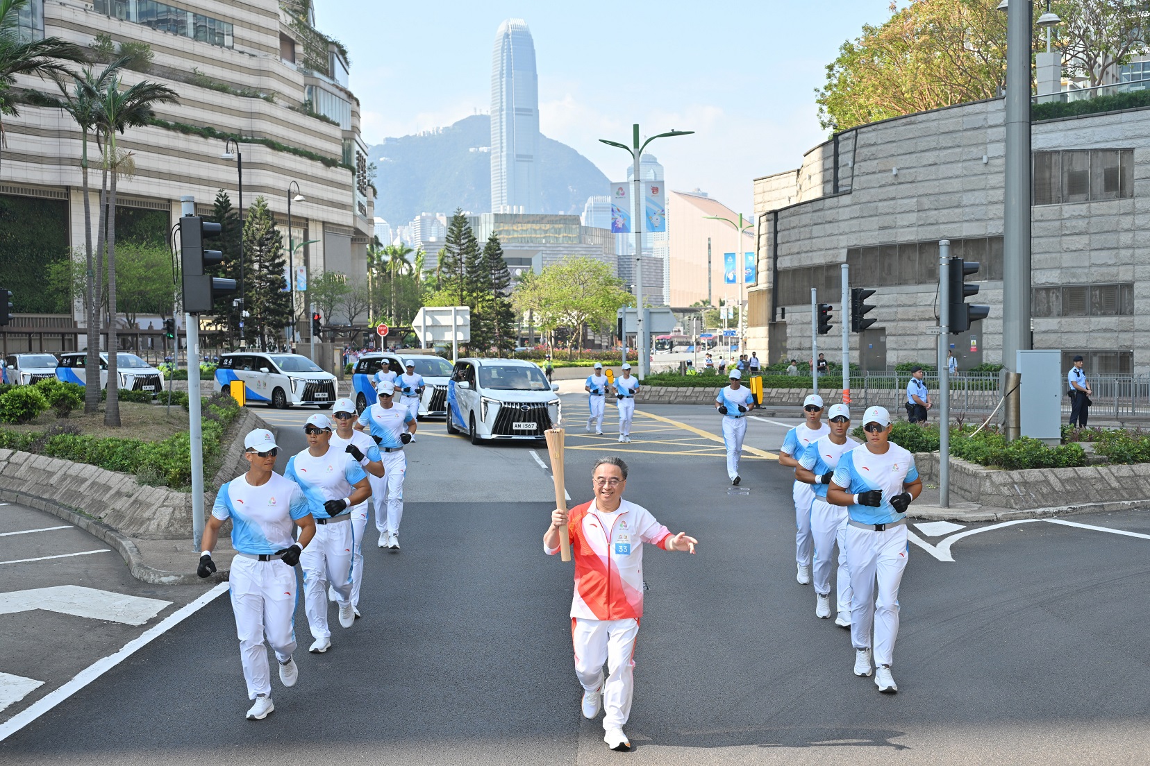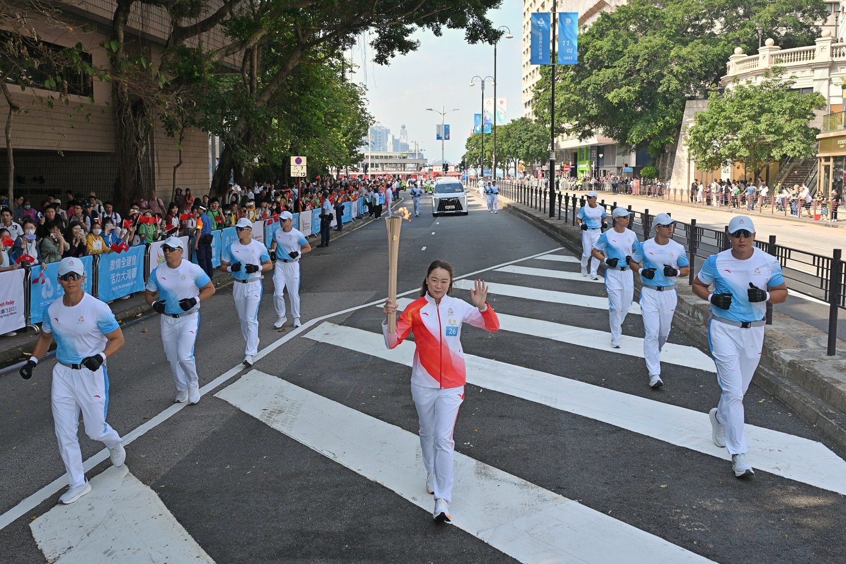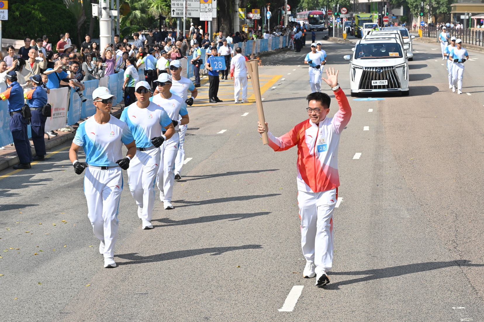 隨著文化體育及旅遊局局長羅淑佩用火種棒燃點火種盆,並由陳國基點燃火炬棒,再交由第一棒火炬手、香港乒乓球代表黃鎮廷,正式展開香港賽區的火炬接力傳遞,最終送抵啟德體育園中央廣場,再由最後一棒、世大運金牌得主、港隊女子重劍代表佘繕妡點燃火盆完成傳遞。