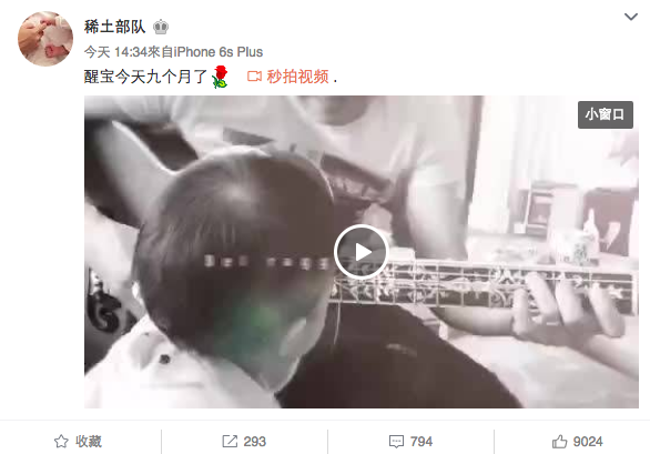 【now.com】內地女星章子怡和歌手汪峰去年結婚,今年年初生下囡囡「醒醒」,之後就專心湊囡,間中出席公開場合露面。如今「醒醒」已經9個月大,今日下午章子怡的微博「稀土部隊」就上載了一段11秒的影片,片中見到汪峰拎起結他彈歌,而「醒醒」就慢慢爬到汪峰的結他前,她更伸手走到結他的弦線中,似乎極富音樂天份,章子怡更留言感慨謂:「醒寶今天9個月了!」