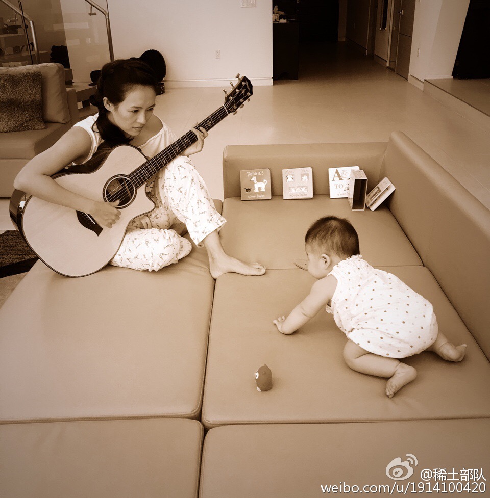 章子怡囡囡出生9個月 捉實結他線富音樂天份