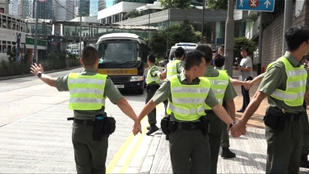 申請保釋的高級督察劉卓毅、警員劉興沛、黃偉豪由囚車押至高等法院。