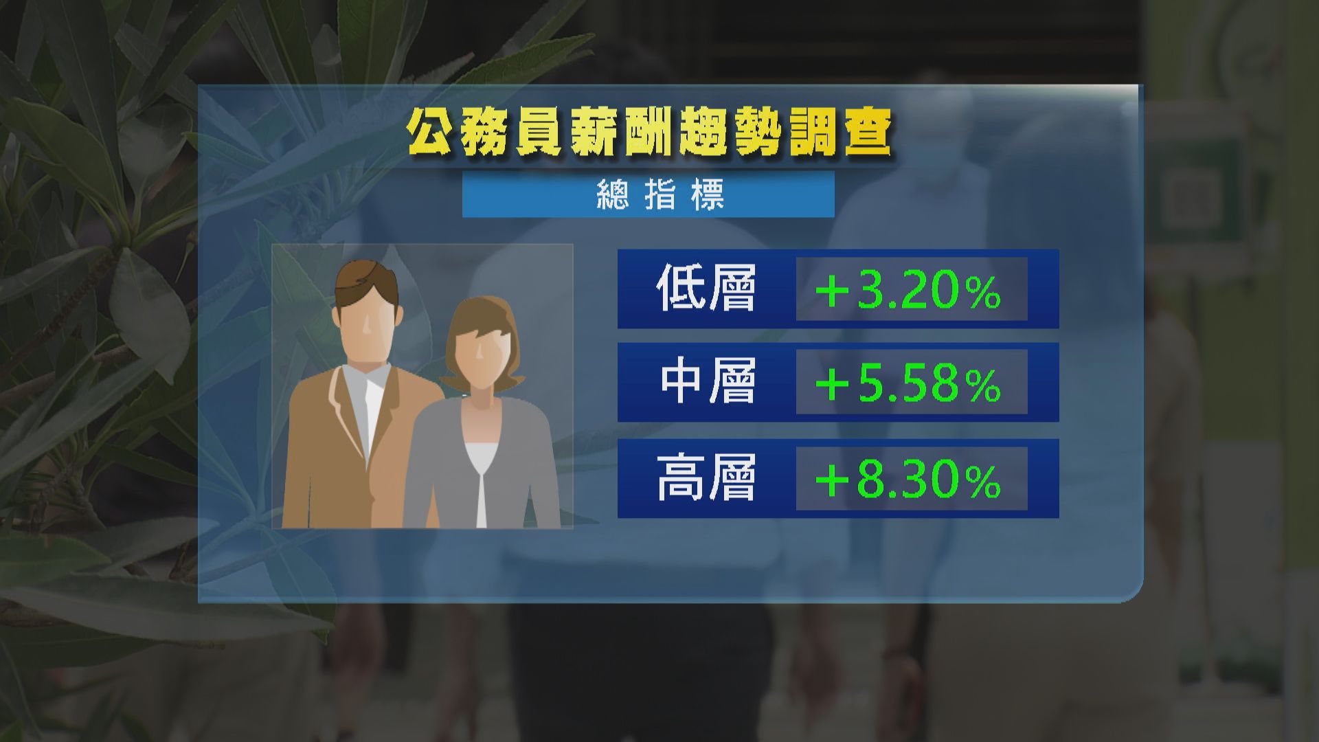 在扣減公務員遞增薪點後得出的薪酬趨勢淨指標,低層加薪2.04%、中層加薪4.55%、高層加薪7.26%。