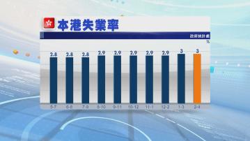勞工及福利局局長孫玉菡評論最新失業數字時表示:「二零二四年二月至四月經季節性調整的失業率維持在3.0%的低水平,與二零二四年一月至三月相同。就業不足率亦維持在1.1%不變。勞動人口進一步增加7 700人至3 807 800人,總就業人數反彈5 700人至3 694 100人。失業人數輕微上升2 000人至113 700人。」