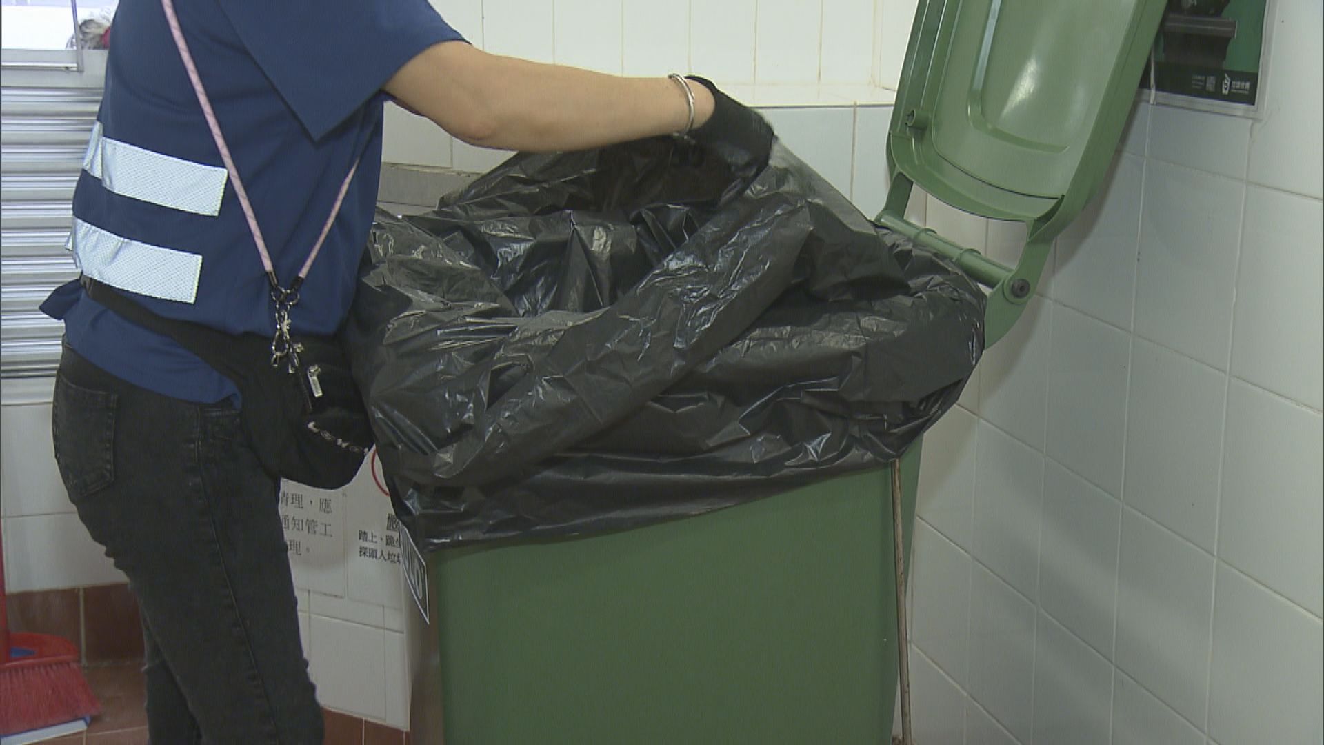 柴灣連翠邨的清潔工人在這段時間要分類指定垃圾袋及普通垃圾袋,不能一次過倒入垃圾槽,每日要用多至少一倍時間,經常都要加班。