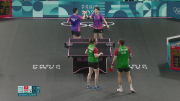 巴黎奧運 黃鎮廷與杜凱琹晉級乒乓球混雙八強 巴黎奧運 黃鎮廷與杜凱琹晉級乒乓球混雙八強 2024年7月28日 01:37 【Now新聞台】港隊乒乓球混雙組合黃鎮廷、杜凱琹晉級混雙半準決賽。 紫衫的「黃杜配」16強面對11號種籽匈牙利拍檔艾卓基及馬達拉絲,先贏兩局11比9及11比8,匈牙利組合第三局大勝11比4追近局數。 黃鎮廷和杜凱琹這對4號種籽之後採取主動,再贏11比6。第五局「黃杜配」開局落後0比5之下後來居上,反勝11比8,局數贏4比1過關。
