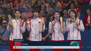 巴黎奧運 中國在游泳項目再增添一面銅牌 巴黎奧運 中國在游泳項目再增添一面銅牌 2024年7月28日 05:31 【Now新聞台】巴黎奧運第一個賽日,中國在游泳項目再增添一面銅牌。 女子4X100米自由泳接力,國家隊決賽游第3線道,楊浚瑄、程玉潔、張雨霏、吳卿風雖然屈居澳洲、美國,第三名到終點,但3分30秒30打破亞洲紀錄。 至於奪金的澳洲就刷新奧運紀錄,時間是3分28秒92。