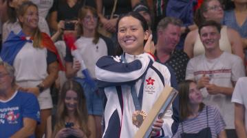 【Now新聞台】巴黎奧運,港隊游泳代表何詩蓓在女子100米自由泳再贏得銅牌,是港隊今屆奧運第四面獎牌。