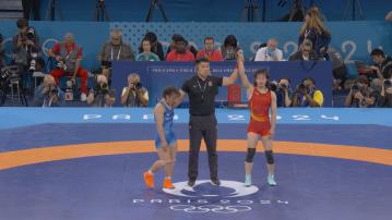 巴黎奧運摔跤女子自由式50公斤級 馮紫琪摘銅 巴黎奧運摔跤女子自由式50公斤級 馮紫琪摘銅 2024年8月8日 06:08 【Now新聞台】巴黎奧運摔跤項目,女子自由式50公斤級,國家隊的馮紫琪得到銅牌。 紅衫的馮紫琪早前在八強出局,但透過復活賽擊敗阿爾及利亞的杜度,晉身銅牌戰,鬥蒙古的杜高查夫。 這位25歲廣州選手打法主動,分數一直領先,力拼至眼部受傷,贏6比4,替國家隊得到今屆摔跤第三面奧運獎牌。