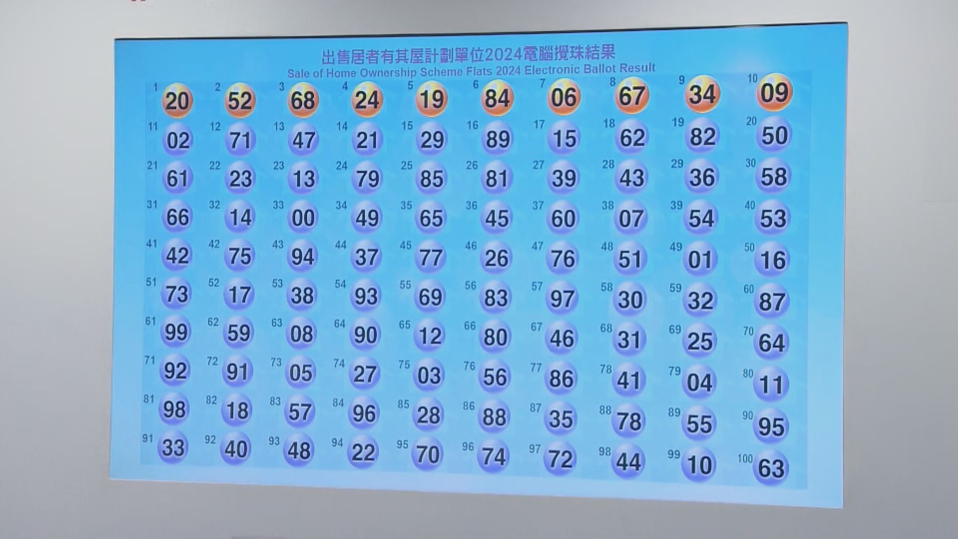 居屋2024攪珠結果 居屋2024攪珠結果 2024年12月12日 10:39 【Now新聞台】居屋2024攪珠頭十個號碼:20、52、68、24、19、84、06、67、34、09。 【居屋2024申請攻略】屋苑數量、實用面積、揀樓安排及日期等一覽