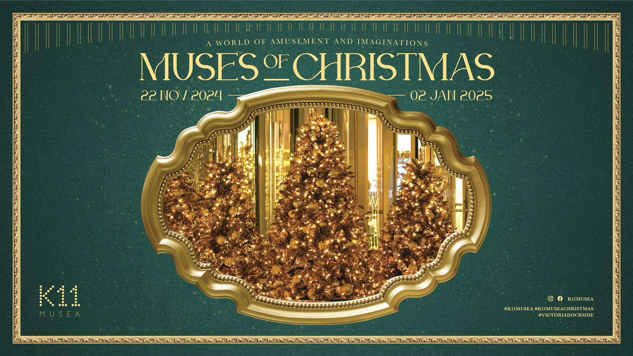 今年K11 MUSEA延續去年的特色,於尖沙咀海傍設置金色12米高的巨型 Dior 聖誕樹和童話馬車,樹上更掛上Dior香水、香薰等裝飾。商場地下的Artisan Lounge亦變身期間限定Dior Cafe。此外,商場更舉行人氣玩偶Jellycat聖誕市集、期間限定聖誕村市集等節日活動。