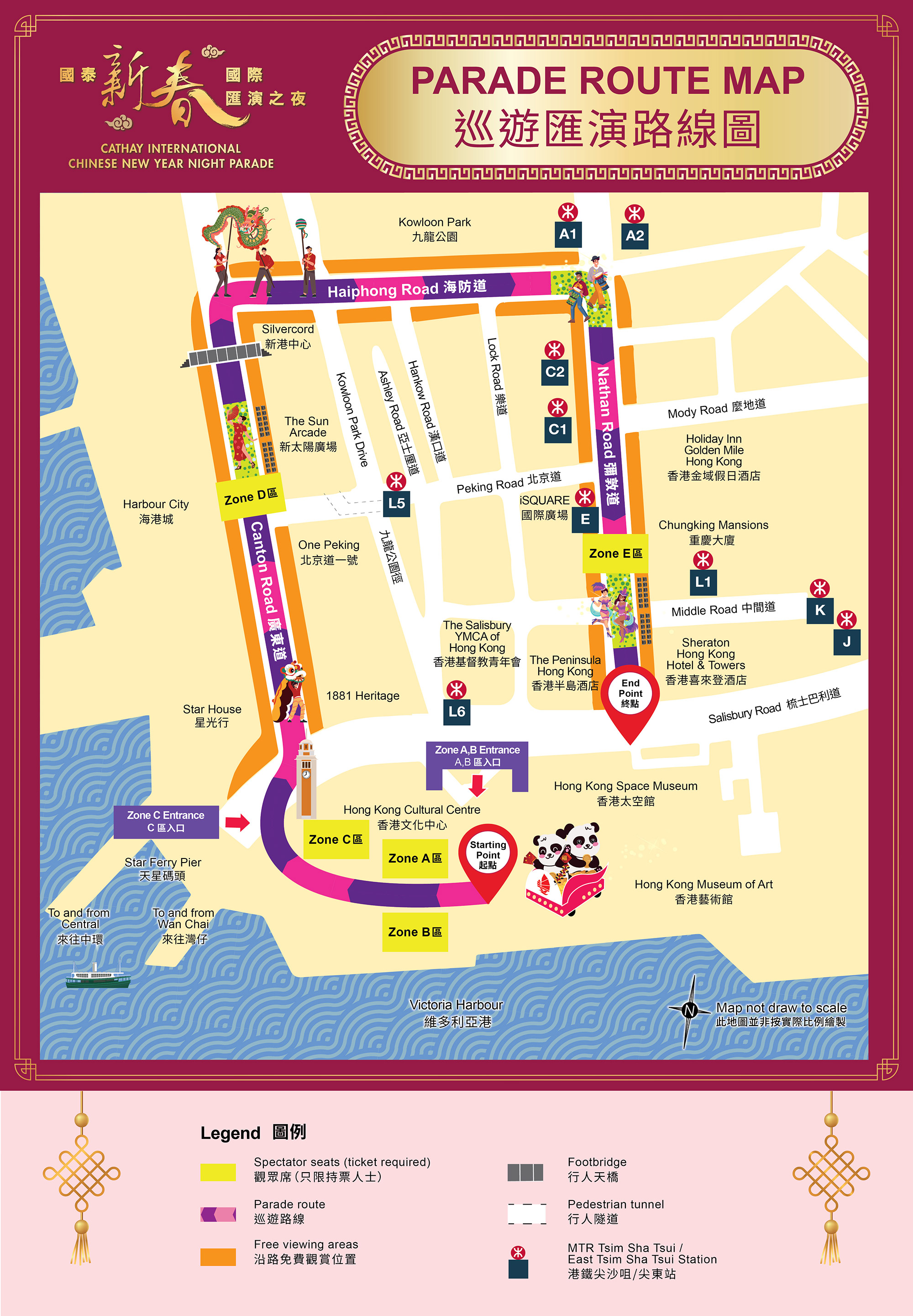 市民及遊客可沿巡遊路線(廣東道、海防道及彌敦道)沿途的有利位置欣賞