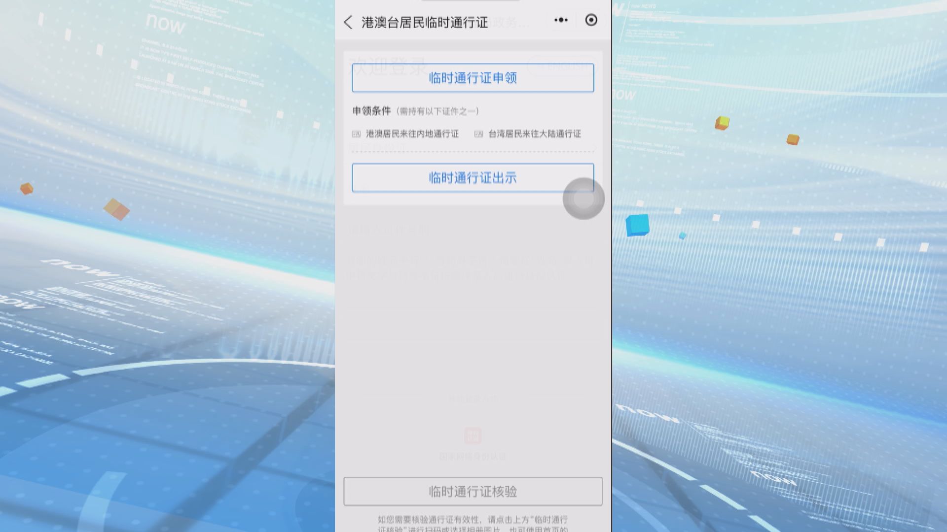 即日起,港澳台居民要緊急搭飛機或火車往內地,可經手機登入內地出入境管理局的服務平台「移民局12367」,即時申辦為期7天的臨時通行證,供相關單位查驗,每個月可申請2次。只需經微信小程序揀選辦理臨時通行證,輸入姓名及證件號碼,通過實名認證後,就會收到二維碼。