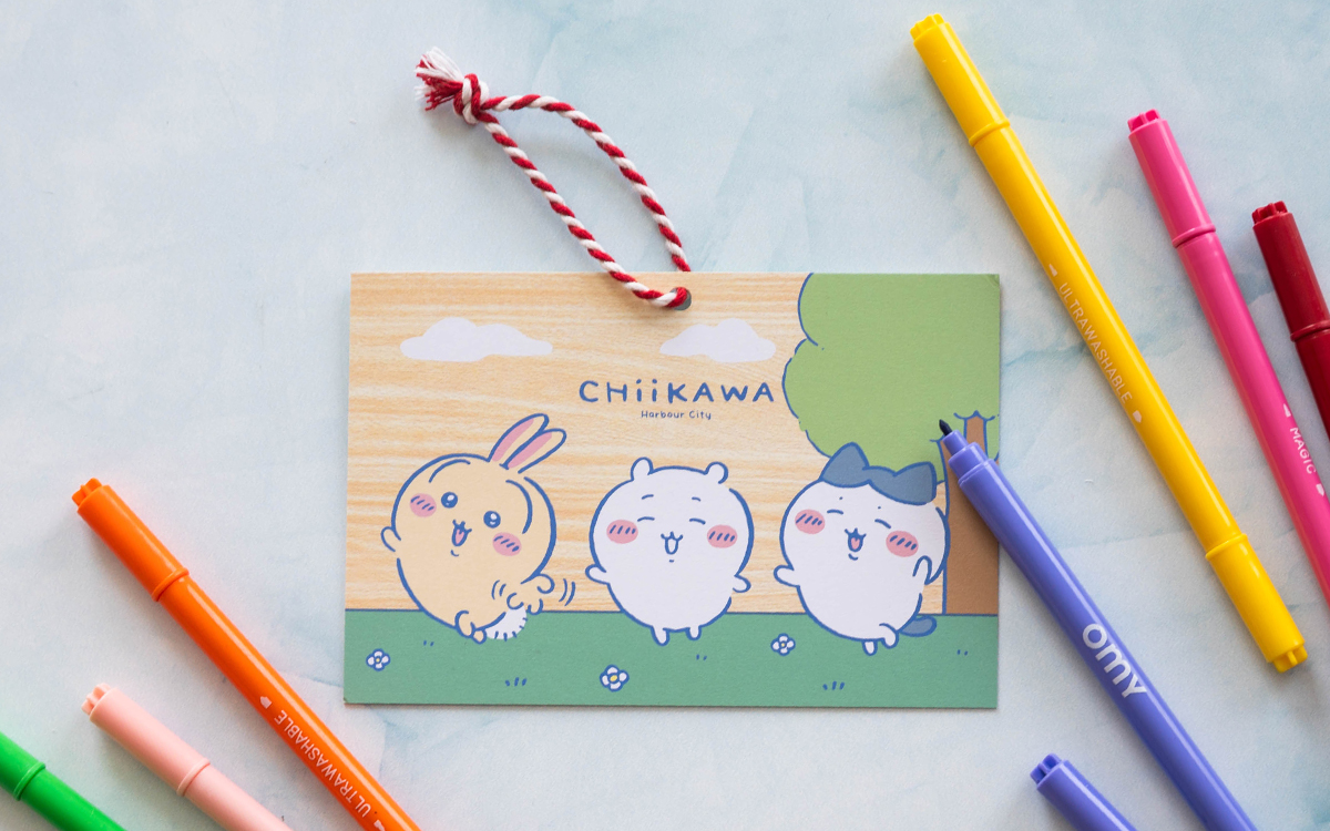 另外,海港城亦在海運大廈地下中庭設有「CHIIKAWA祈願園林」,凡於期間限定店消費滿港幣$300,即可在祈願園林兌換「CHIIKAWA幸福祈願卡」一張。粉絲們可寫下心願,將祈願卡掛在樹上許願。
