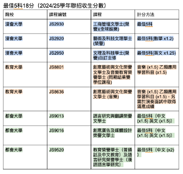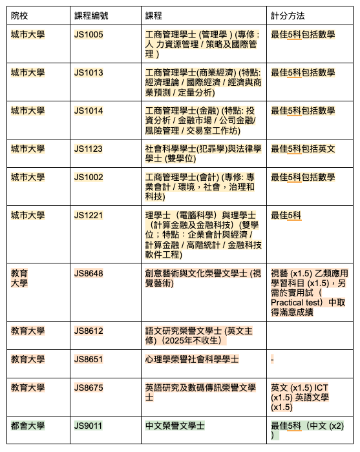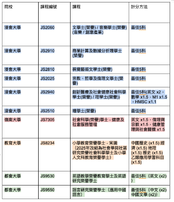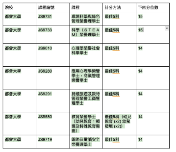 • 城大、浸大、嶺大、教大、都大為下四分位數收生分數,同時已計算指定比重(計分方法可參考各院校的公布)