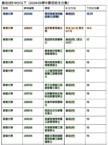 DSE放榜2025|大學聯招|最佳5科18分以下有何科目選擇?