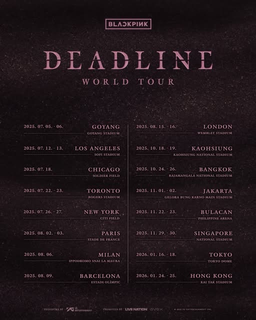 BLACKPINK公布,今年7月起舉行世界巡唱,7月5日第一站先在南韓高陽市舉行。
