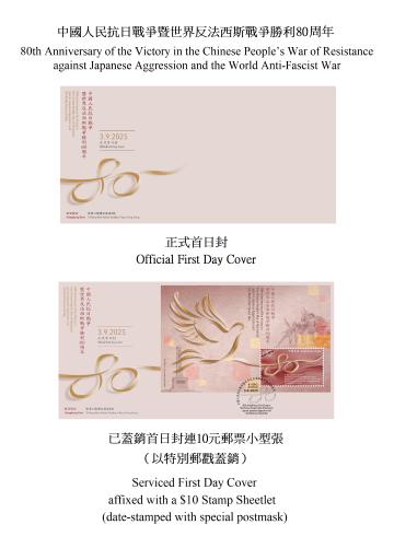 香港郵政將以「中國人民抗日戰爭暨世界反法西斯戰爭勝利80周年」為題,發行一款郵票小型張及相關郵品。郵票小型張的設計圍繞抗戰勝利八十周年紀念的主題為「銘記歷史、緬懷先烈、珍愛和平、開創未來」。