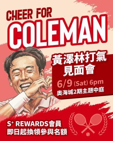 而Coleman亦會親臨打氣見面會,分享他比賽的心路歷程和與市民交流。