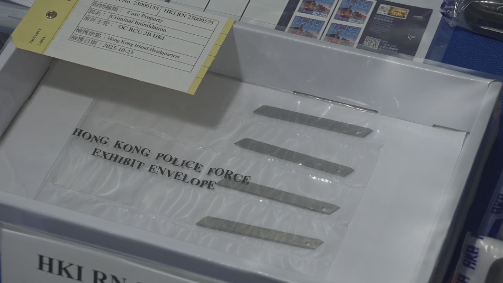 檢獲的證物包括刀片、手提電話及郵票等。警方指,由上周三起一周內收到多宗報案,有關3名內容創作者先後收到自稱「白卡聯盟」寄出帶有威嚇成分內容的信件,信內亦附有鎅刀及刀片,懷疑受害人因瑣事糾紛,與個別所謂聯盟人士結怨。