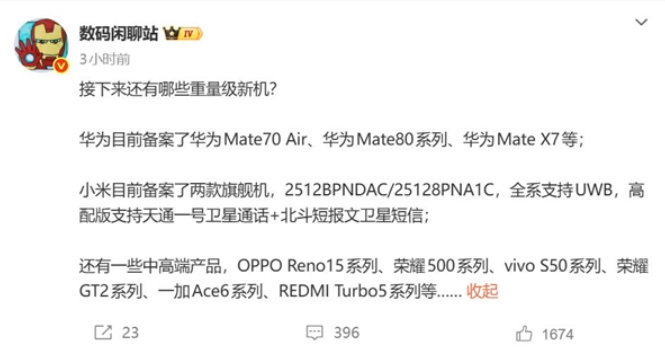 【MOBILE】日前據知名數碼博主「數碼閒聊站」透露,小米新一代旗艦手機 17 Ultra 已正式備案,將推出兩個版本,型號分別為 2512BPNDAC 與 25128PNA1C。全系列均支援 UWB 超寬頻技術,而高配版本更獨家搭載「天通一號衛星通話」與「北斗短報文衛星短信」雙衛星通信系統。