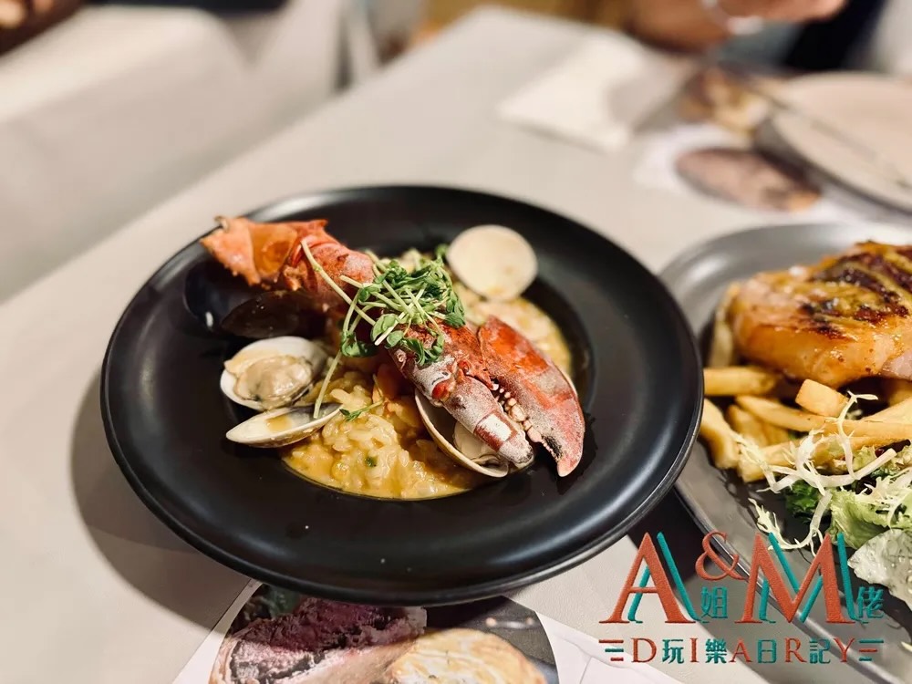 意大利飯軟硬適中,粒粒都飽滿住香氣四溢嘅龍蝦濃湯,加上拉絲芝士嘅加持,味道非常香濃。至於配料用上大量新鮮嘅海鮮:蝦、龍蝦、青口、蜆等等,令海鮮意大利飯更具層次。