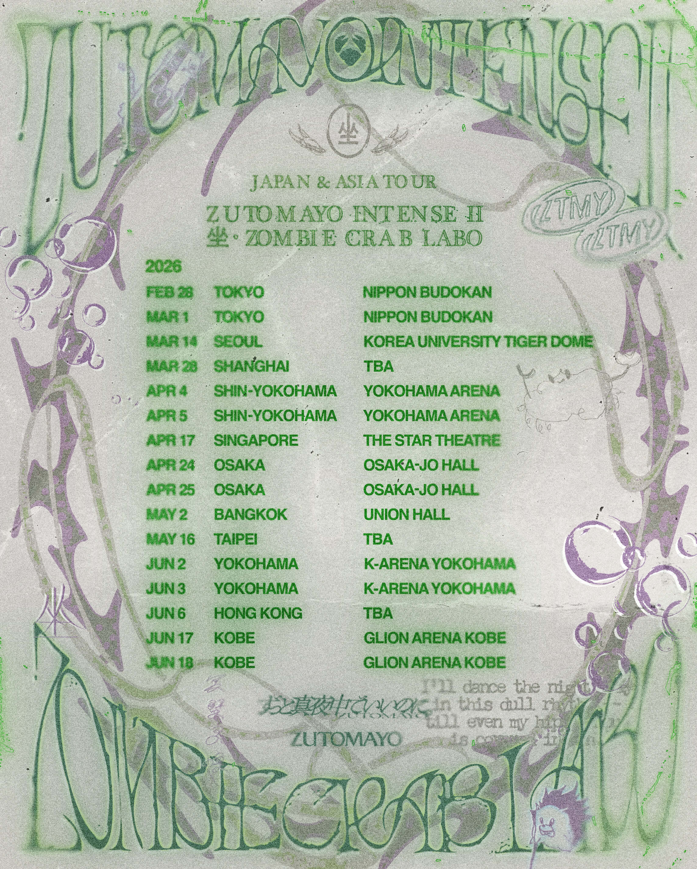 【Now.com】日本樂團「永遠是深夜有多好。」(ZUTOMAYO)早前宣布即將展開亞洲巡迴演出「ZUTOMAYO INTENSE II『坐・ZOMBIE CRAB LABO』」。最近樂團就宣布將會加開多場演出,其中更包括香港站!各位ZUTOMARO記得留意演唱會的詳情~