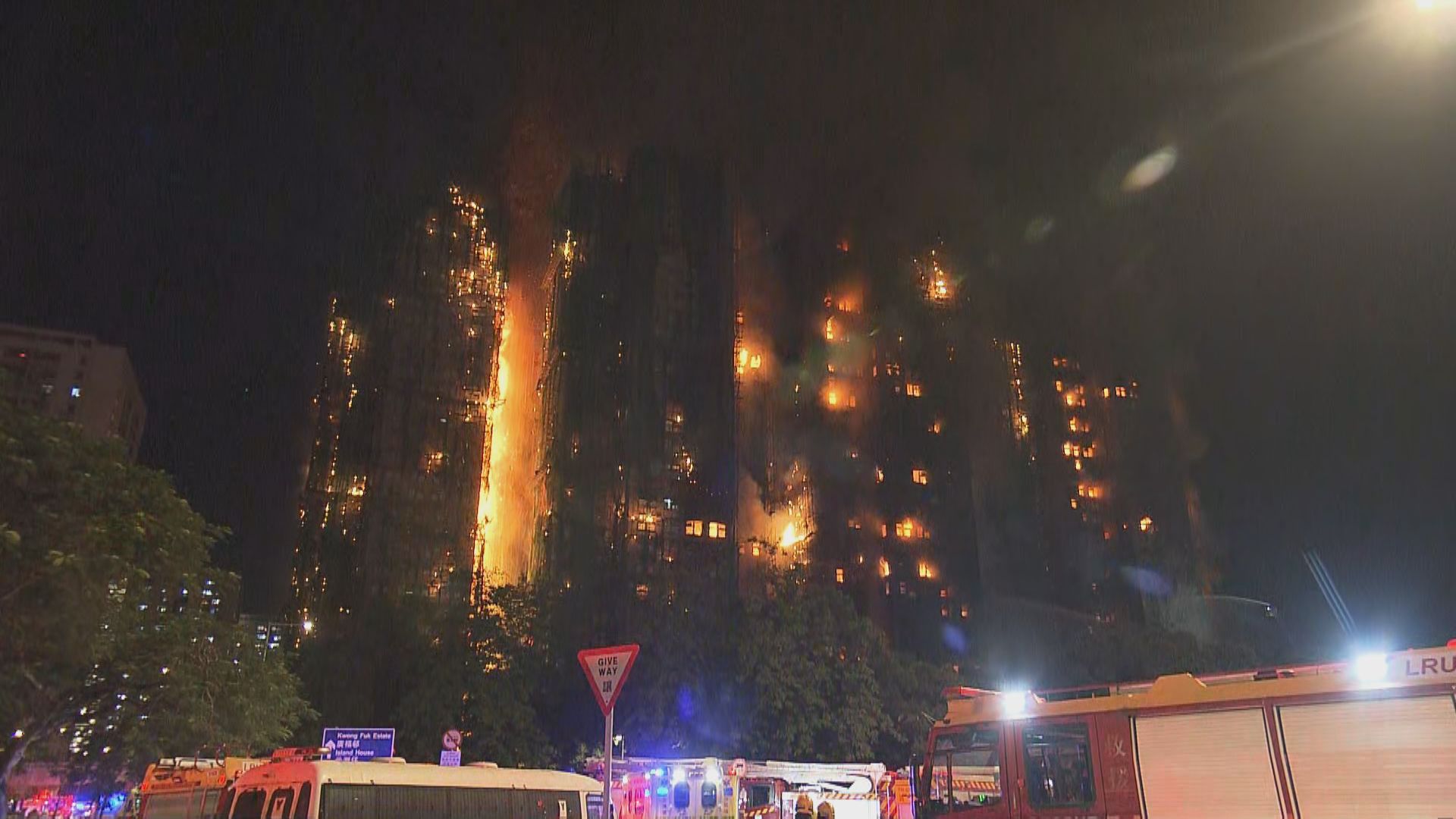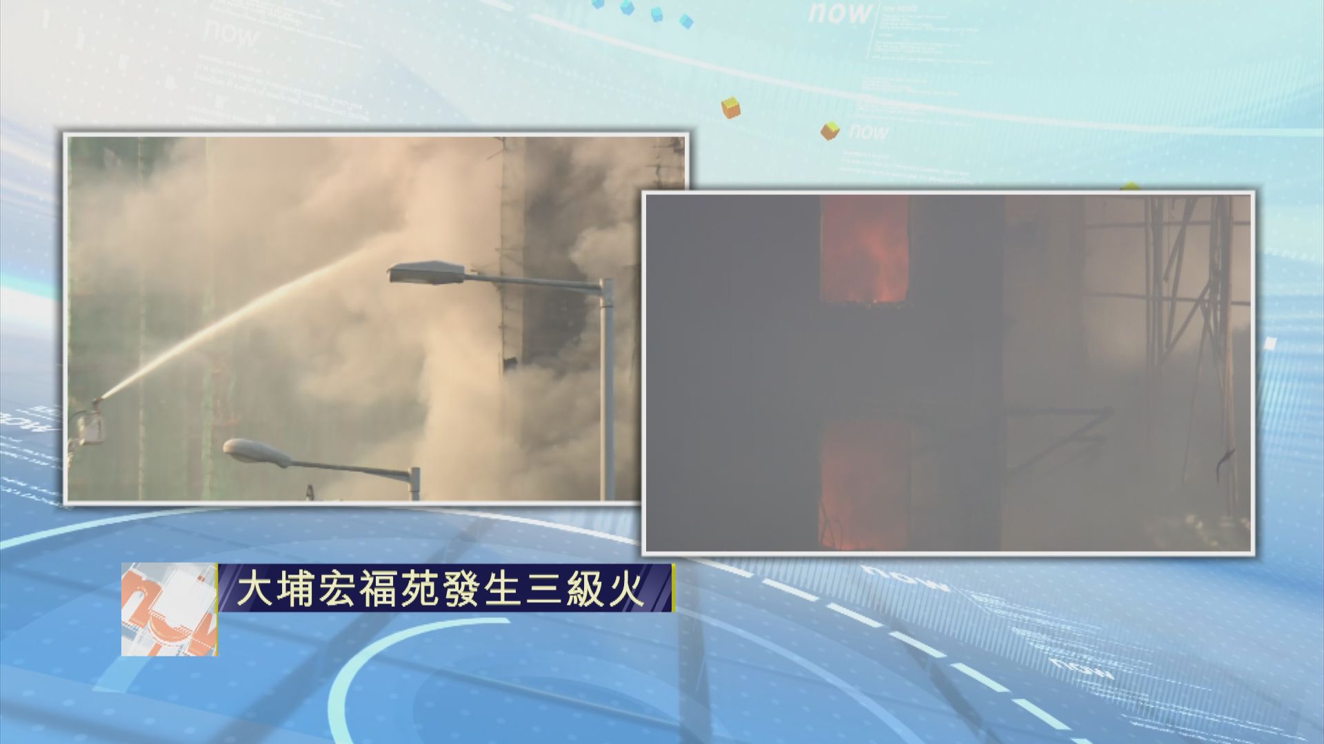 【Now新聞台】大埔宏福苑宏昌閣外牆棚架周三(11月26日)下午起發送火警,火勢蔓延,現場火光沖天,冒出大量濃煙。火警最新消息更新如下: